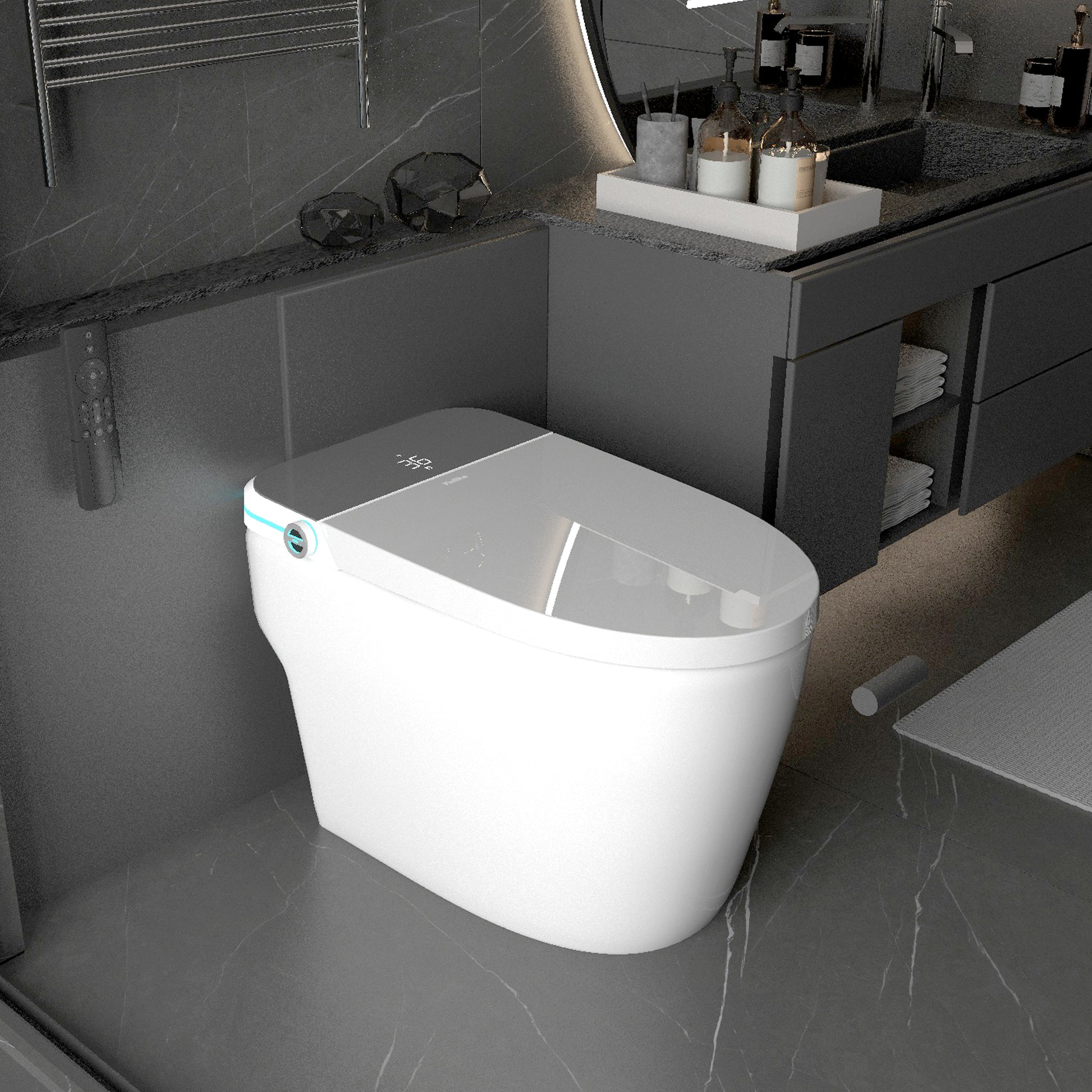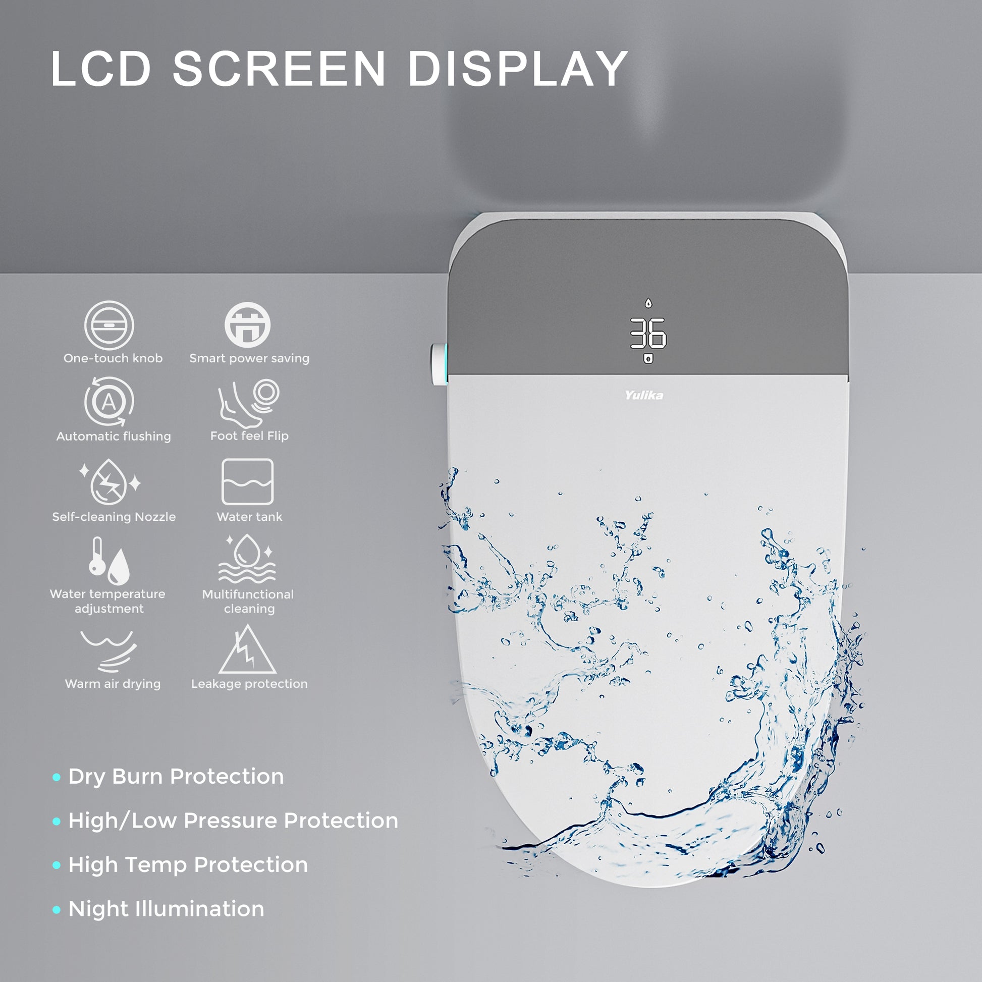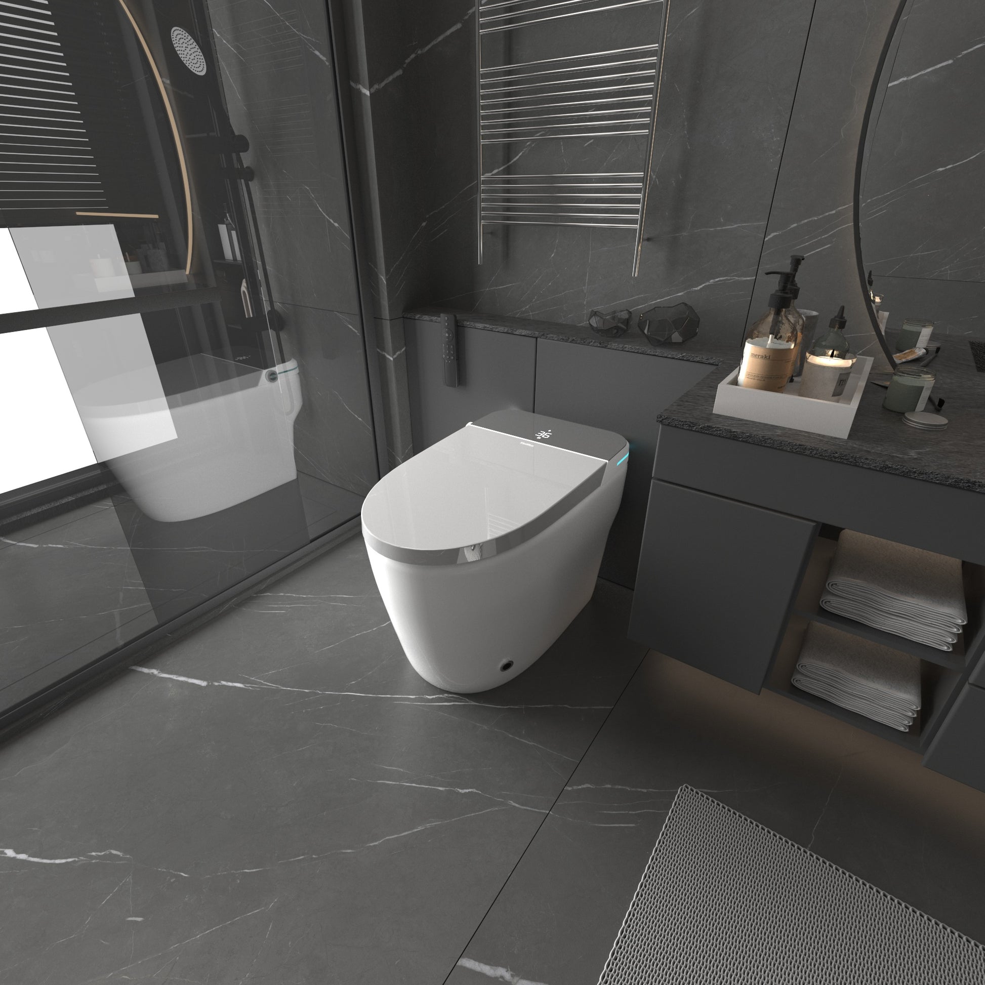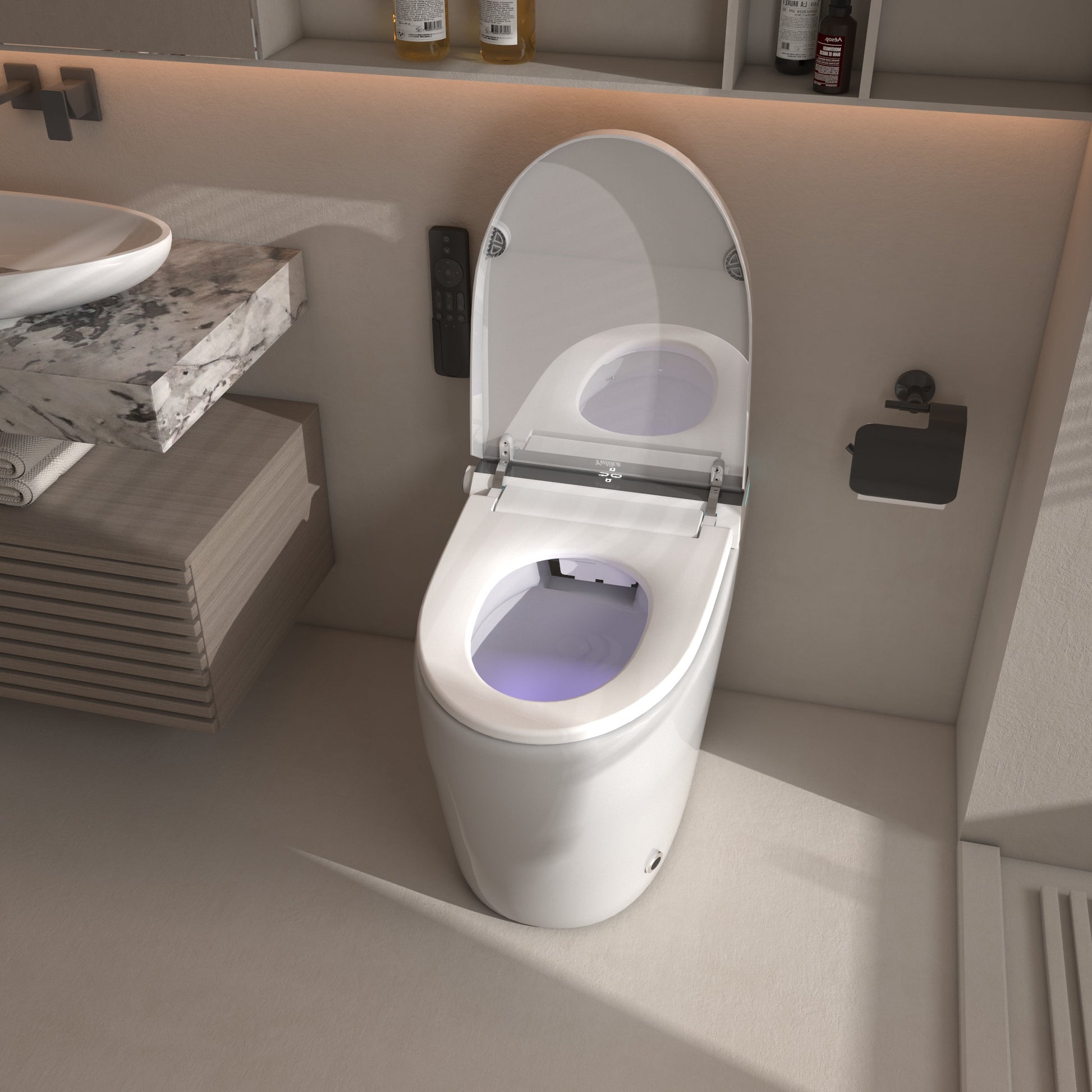 The Auto Open/Close Lid Smart Toilet Bidet combines cutting-edge technology with luxurious comfort. Featuring radar-sensing auto lid operation, foot-sensing controls, and a built-in tank for powerful, water-efficient flushing (1.28 GPF), it ensures convenience and hygiene. Enjoy personalized comfort with a heated seat, adjustable water temperature, and warm air drying. Multiple cleaning modes, including posterior, feminine, and massage wash, paired with a self-cleaning nozzle, guarantee ultimate cleanliness. The LCD display and LED night light add practicality, while the wireless remote and one-touch button simplify operation. Designed for easy installation and safe use, this smart toilet is perfect for modern bathrooms.