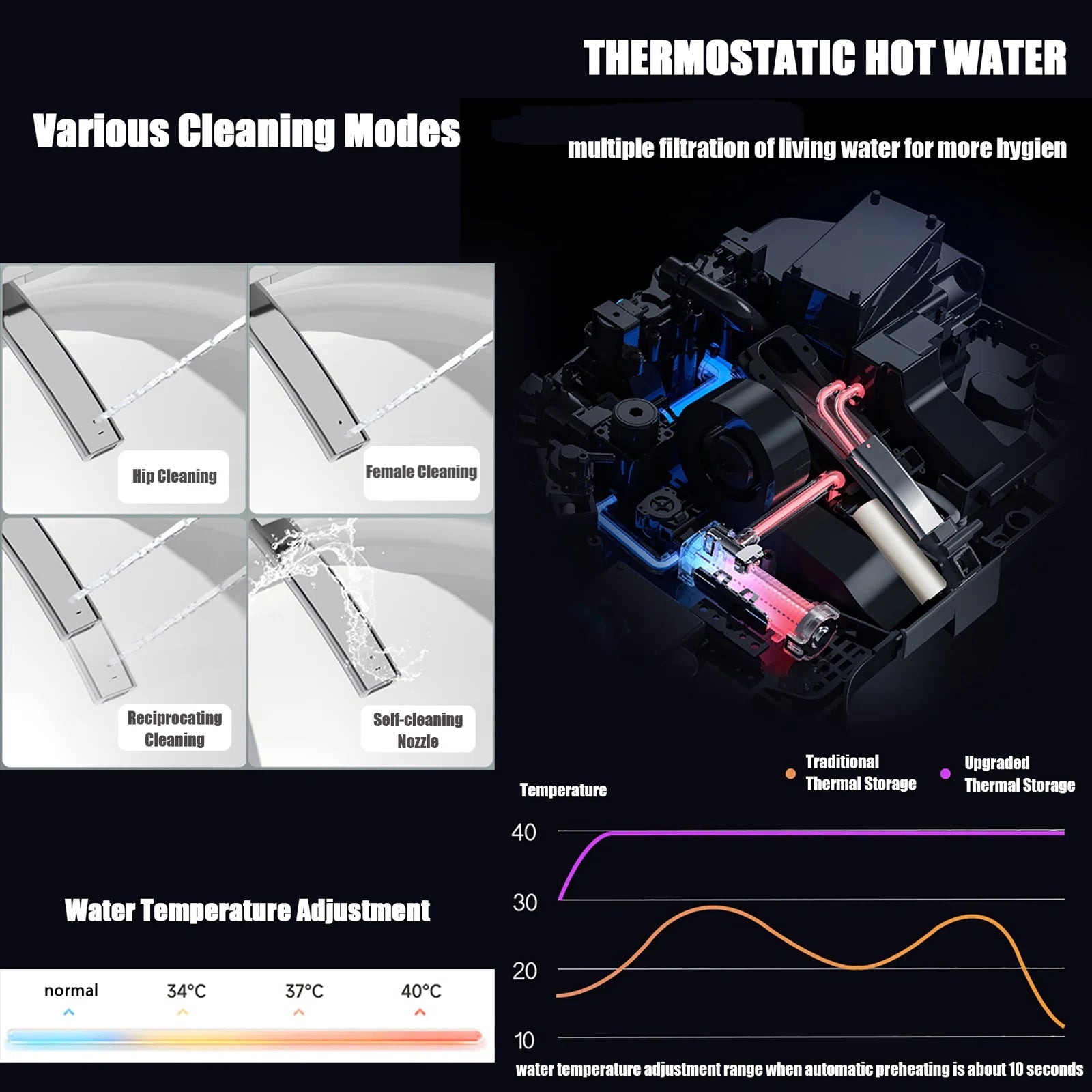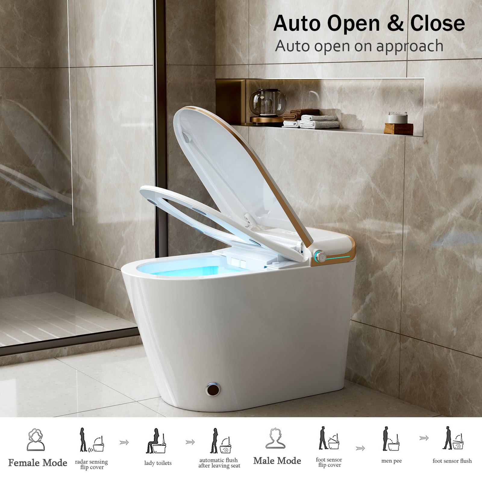 Loniko U2 Auto Open & Close Smart Bidet Toilet with Foot sensor, Tankless Toilet with Auto Flushing
